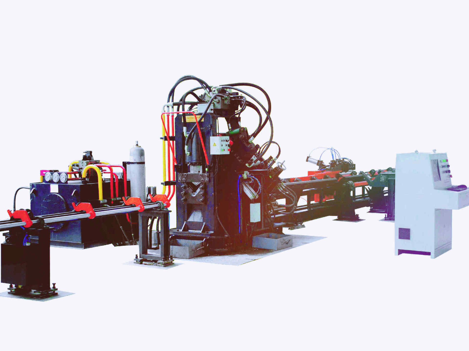 铁塔厂家自动化角钢冲孔加工请使用济南光先数控JNC系列数控角钢打字冲孔剪切生产线。生产线通过PLC模块数控控制,自动化程度高,可实现无人化自动加工生产。